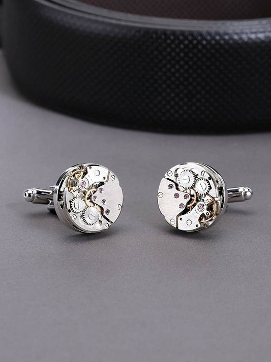 Silver-Toned 316L Stainless Steel Round Formal Cufflinks – Premium Textured Design