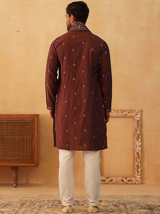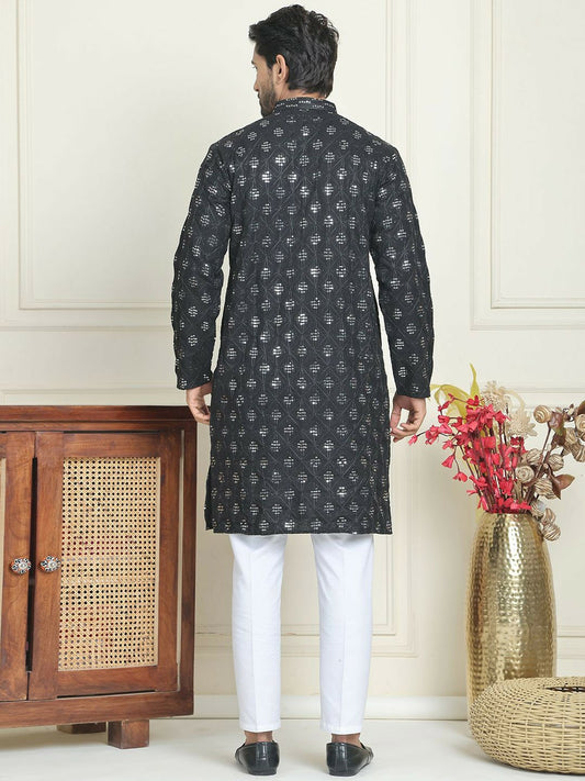 Men’s Embroidered Cotton Kurta – Indian Wedding, Bridal & Pakistani Ethnic Kurta with Sequins | Indiaista