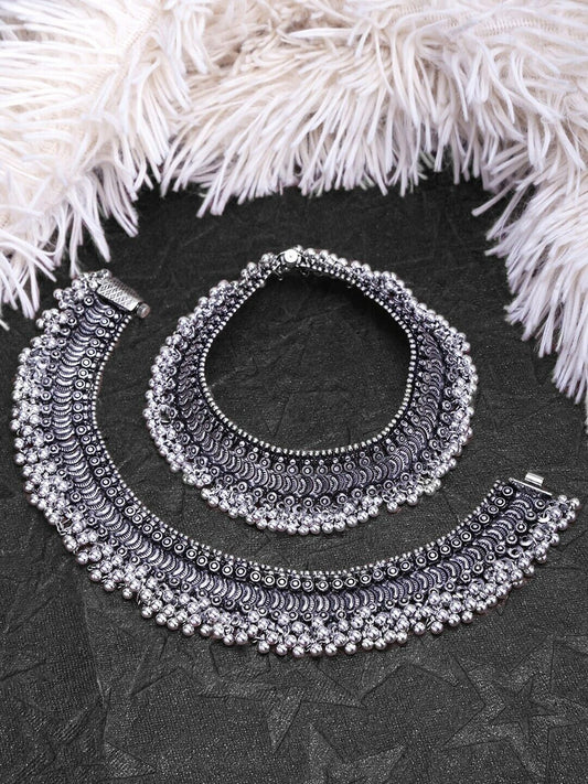 Bollywood Indian Bridal Wedding Jewelry – German Silver Oxidized Anklets Set of 2