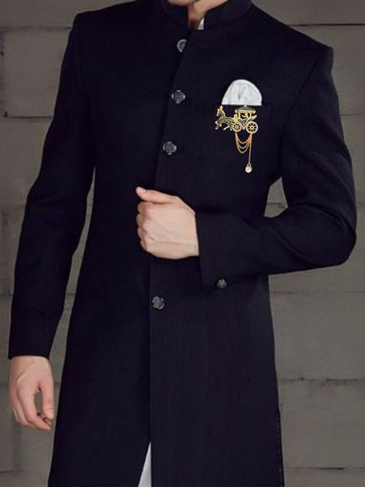 Horse Chariot Chain Sherwani Brooch – Royal Men’s Ethnic Accessory for Weddings & Festive Wear