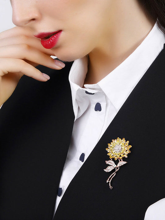 Gold-Toned American Diamond Brooch – White Stone Statement Lapel Pin for Men & Women