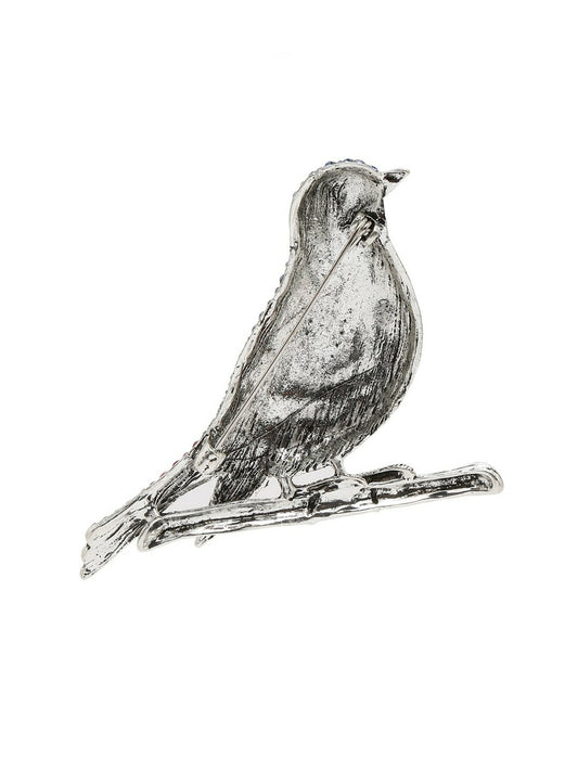 Elegant Silver-Toned Bird Brooch – Crystal Studded Lapel Pin for Men & Women