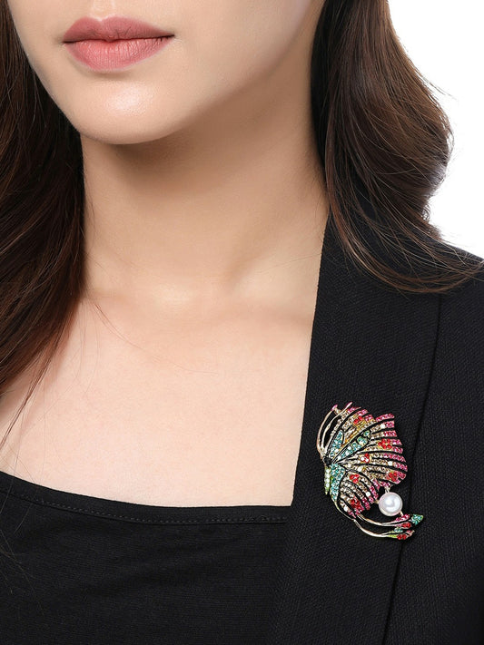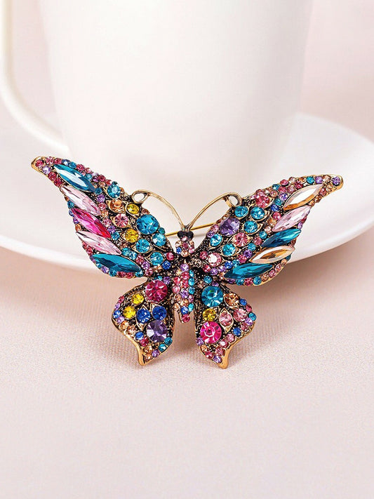 Multicolor Crystal Butterfly Brooch Pin – Elegant & Stylish Accessory for Women & Girls