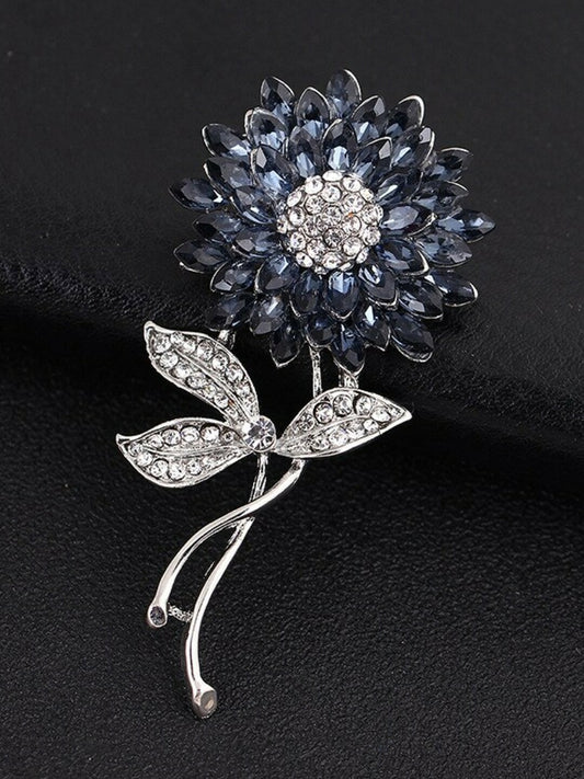 Elegant Silver-Plated Floral Brooch with White & Blue Stones – Stylish Accessory for Men & Women