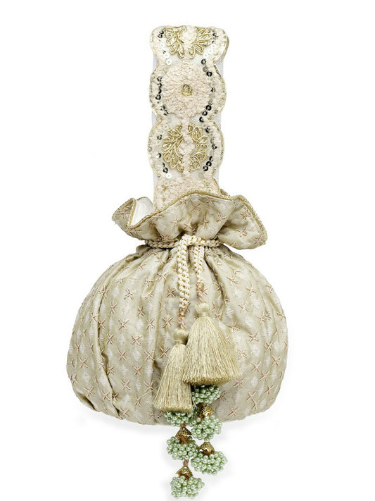 Buy Champagne & White Embellished Tasselled Potli Clutch – Elegant Women’s Potli Bags