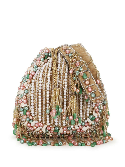 Buy Gold-Toned Embellished Tasselled Potli Clutch Bag Online – Indiaista