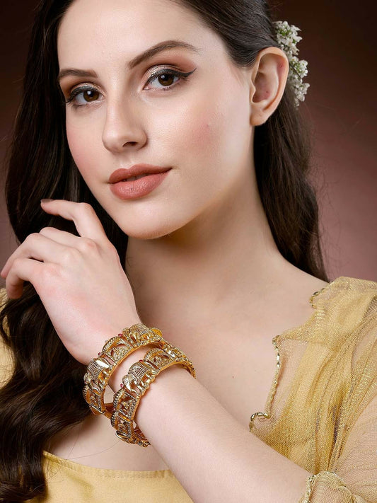 Elegant Gold-Plated Kundan Bangles – Set of 2 | Bride Doli & Elephant Design