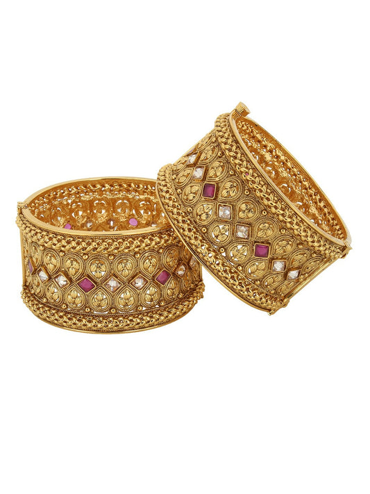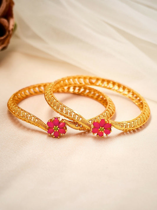 Set of 2 24K Gold-Plated Bangles with Pink Ruby Detailing – Indiaista