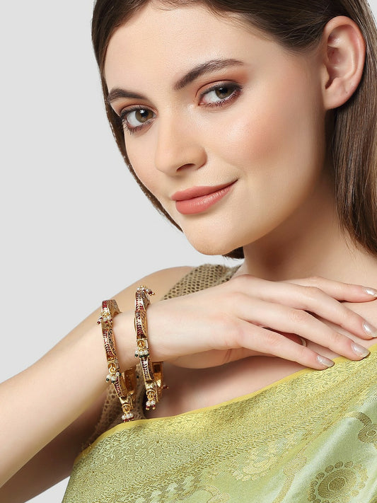 Elegant Gold-Plated Red Enamelled Bangles – Set of 2 | Indiaista