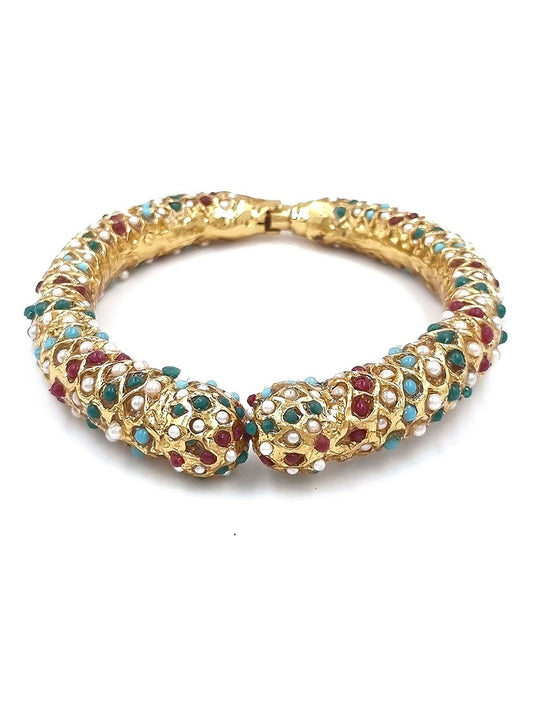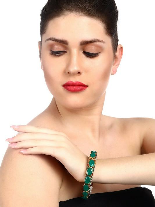 24 CT Gold-Plated Green & Red Stone Handcrafted Bangle | Indiaista