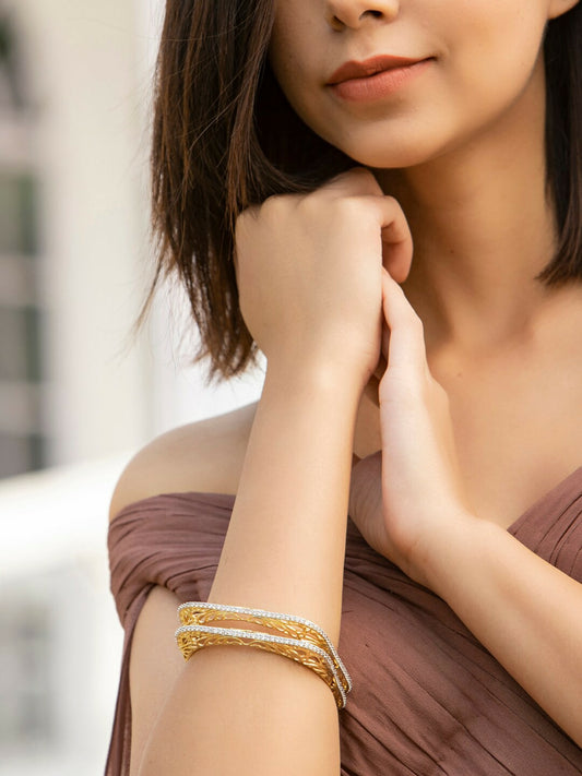 Elegant Set of 4 Gold-Plated & White Bangles with American Diamonds – Indiaista