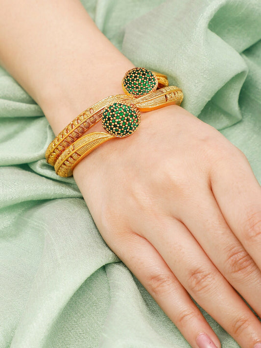 Elegant 22K Gold-Plated Bangles with Green AD Stones – Set of 2 | Indiaista