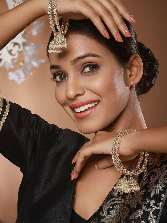Elegant Gold-Toned & White Kundan Pearl Bangles Set – Pack of 4 | Indiaista