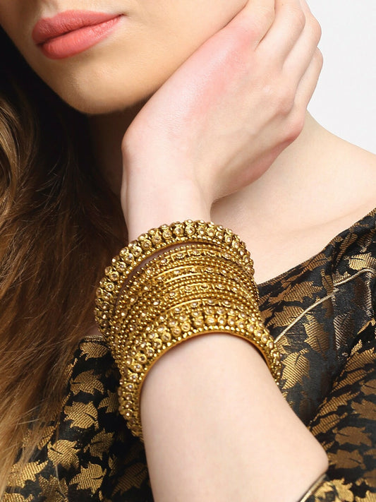 Set of 28 Gold-Plated Bangles with Gold-Colored Crystal Studs – Antique Design | Indiaista