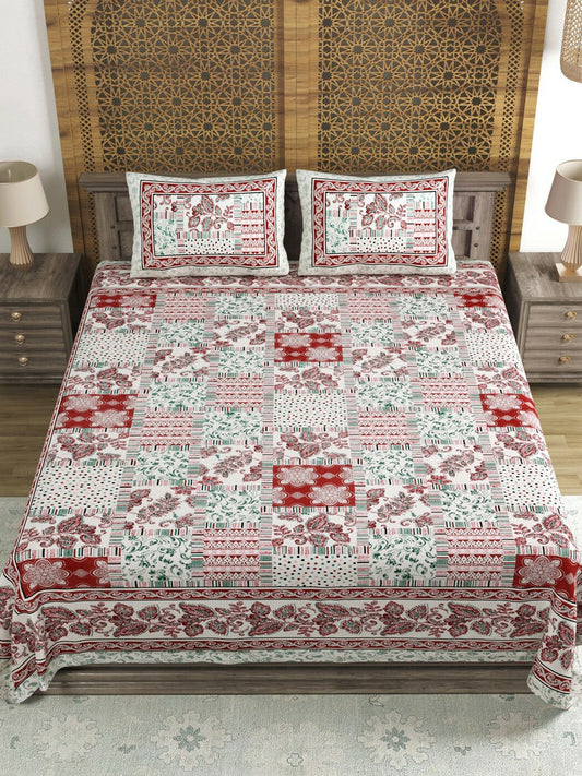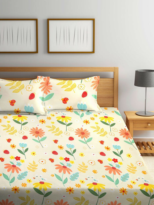 Floral Printed Cotton Bedsheet Set – Queen Size (144 TC) with 2 Pillow Covers | Indiaista