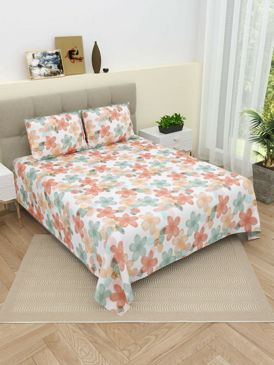 Floral Super King Bedsheet Set – 220 TC Cotton | 1 Bedsheet & 2 Pillow Covers