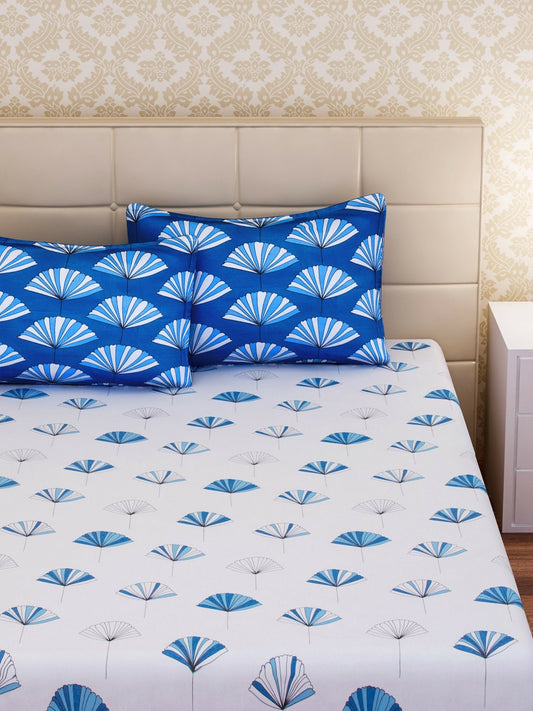 Blue & White Geometric Printed Cotton King Size Bedsheet – 210 TC | 1 Bedsheet & 2 Pillow Covers
