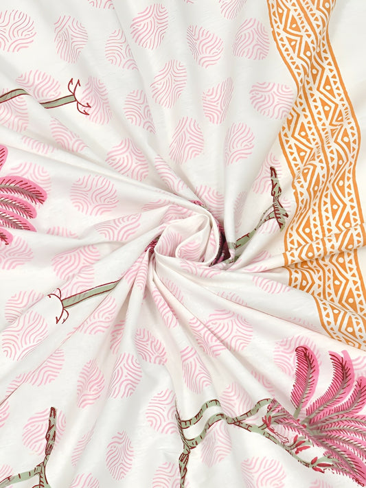 Pink & White Floral Printed Super King Bed Sheet Set – 100% Cotton, 180 TC