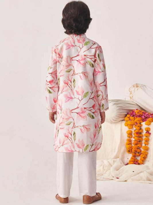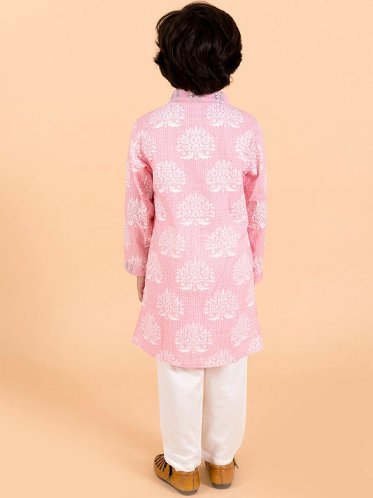 Buy Boys Pink Floral Kurta Set with Nehru Jacket – Ethnic Wear for Weddings & Festivals | Indiaista