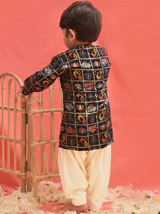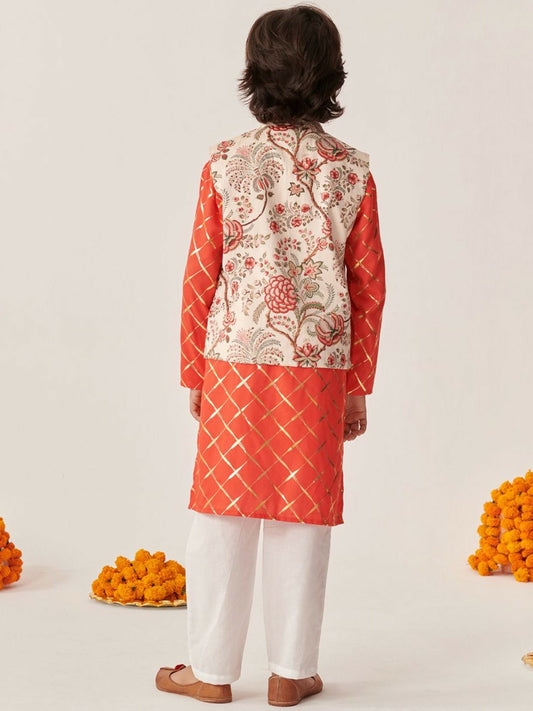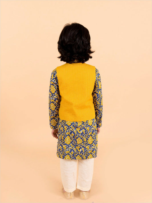 Boys Floral Printed Kurta with Pyjama & Jacket – Ethnic Indian Outfit for Weddings & Festivals
