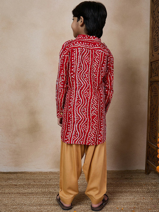 Boys Red Bandhani Printed Kurta with Dhoti Pants – Ethnic Indian Outfit for Weddings & Festivals