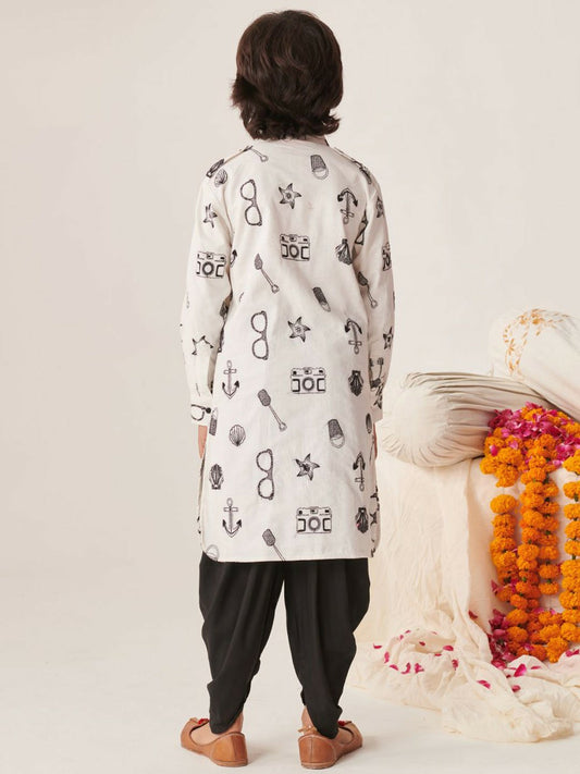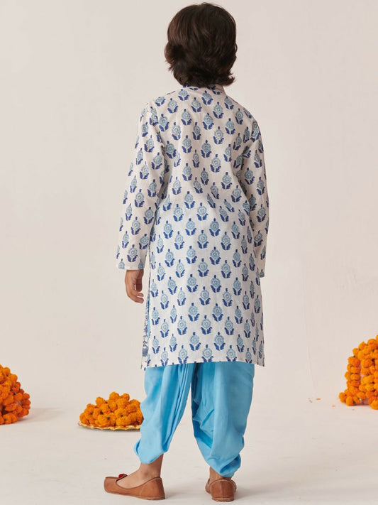 White Printed Kurta with Dhoti Pants – Traditional Ethnic Wear for Boys