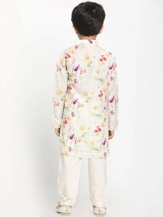 Cream-Coloured Floral Printed Kurta with Pyjama – Ethnic Indian Outfit for Boys
