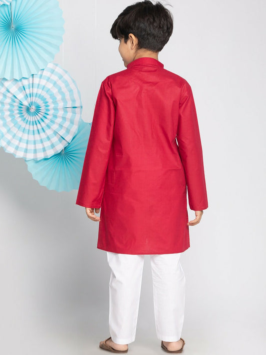 Boys Red Solid Kurta with Pyjama – Ethnic Indian Outfit for Weddings & Festivals