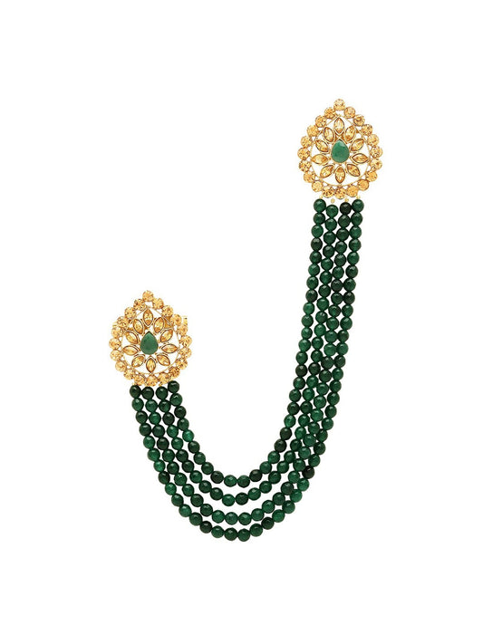 Gold-Toned & Green Stone Studded Brooch – Elegant Pin for Ethnic & Formal Wear