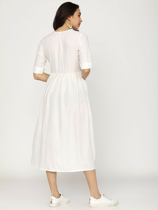 Buy Off-White Embroidered A-Line Ethnic Dress for Women | Indiaista