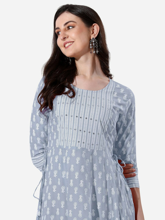 Buy Grey Printed Woven Fit & Flare Ethnic Dress Online | Indiaista
