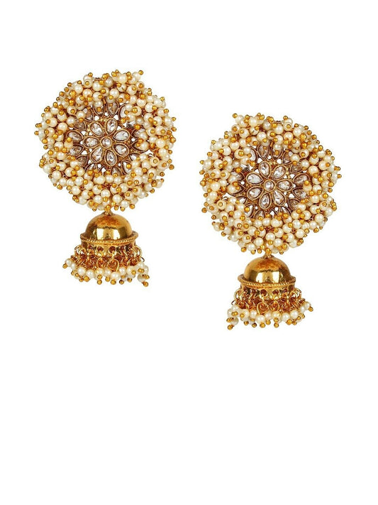 Indian Jewelry Gold-Plated & White Classic Bollywood Jhumka Earrings – Pearl Accents