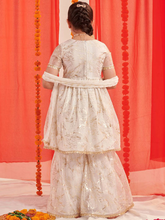 Buy White Floral Printed Kurta with Palazzos for Girls - Pure Cotton | Indiaista