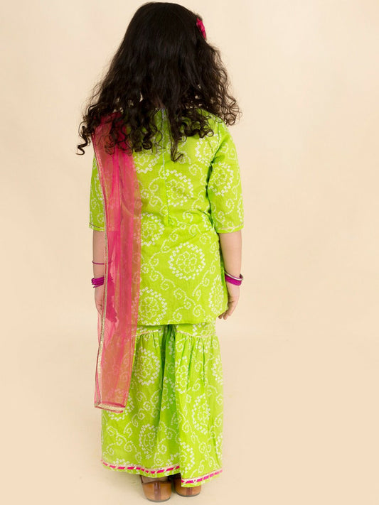 Green & Pink Bandhani Embroidered Kurta with Sharara & Dupatta – Ethnic Elegance