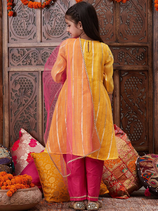 Buy Yellow Abstract Printed Kurta with Salwar & Dupatta for Girls – Indiaista