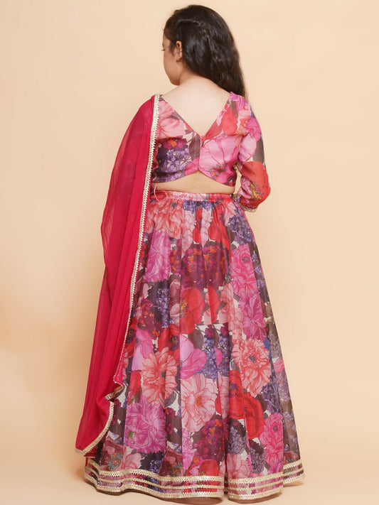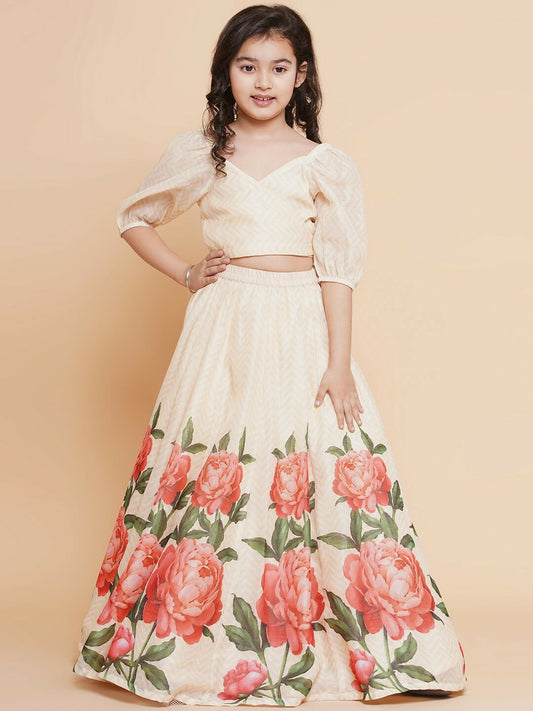 Buy Girls Floral Printed Ready to Wear Lehenga Choli - Beige & Red | Indiaista