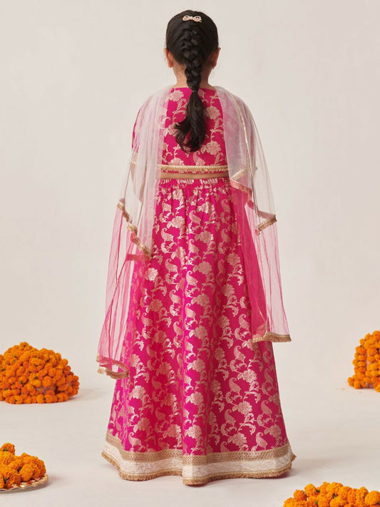 Buy Pink & Gold-Toned Girls Lehenga Choli with Dupatta - Indiaista