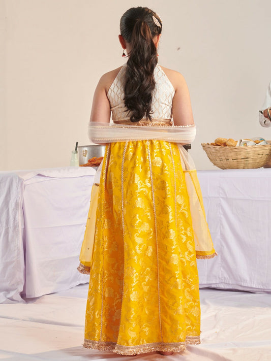 Buy Girls Yellow & White Printed Lehenga Choli with Dupatta – Ready to Wear | Indiaista