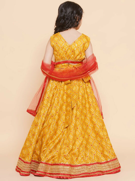 Buy Girls Bandhani Printed Gotta Patti Cotton Lehenga – Yellow & Red | Indiaista