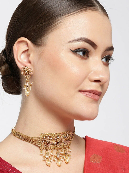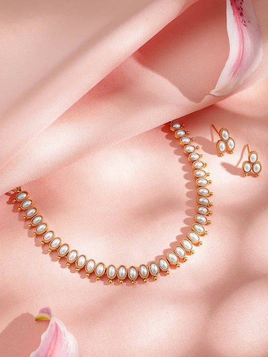 Buy Women 22KT Gold Plated Pearl Choker Necklace Set Online – Indiaista