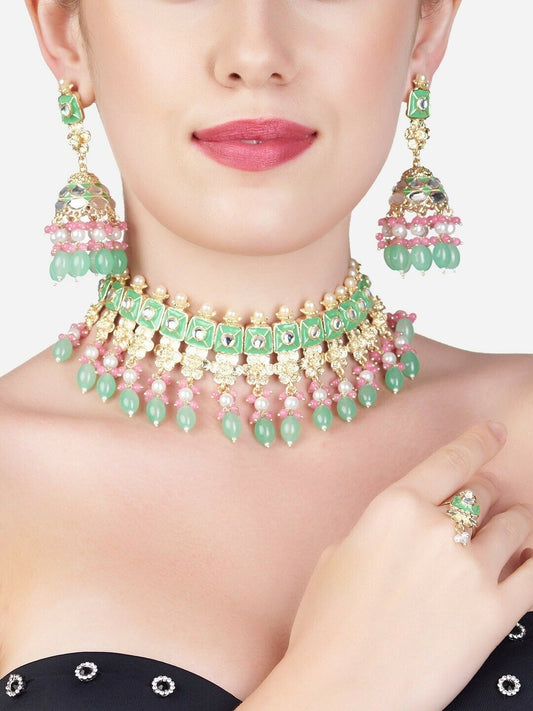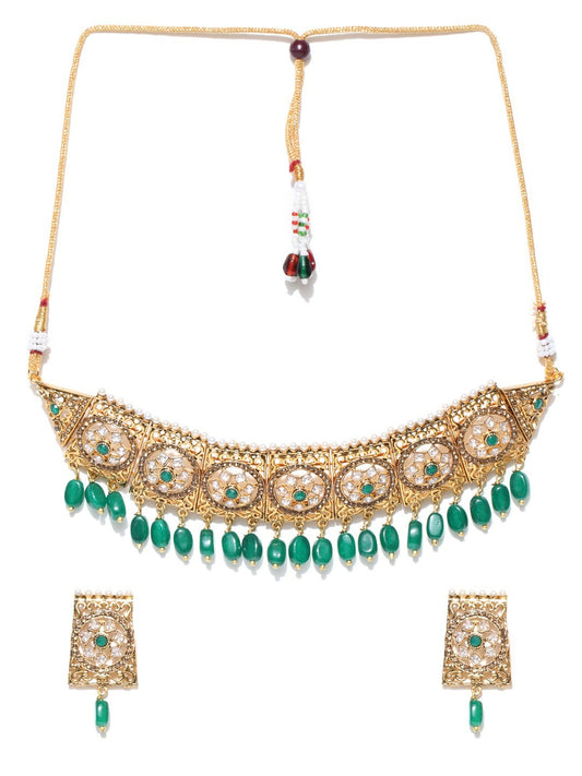 Women Green & Gold Kundan Choker Jewellery Set | Indiaista
