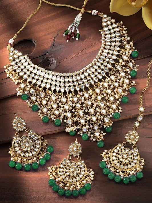 Women Gold-Plated & Green Kundan Jewellery Set | Elegant Traditional Design – Indiaista
