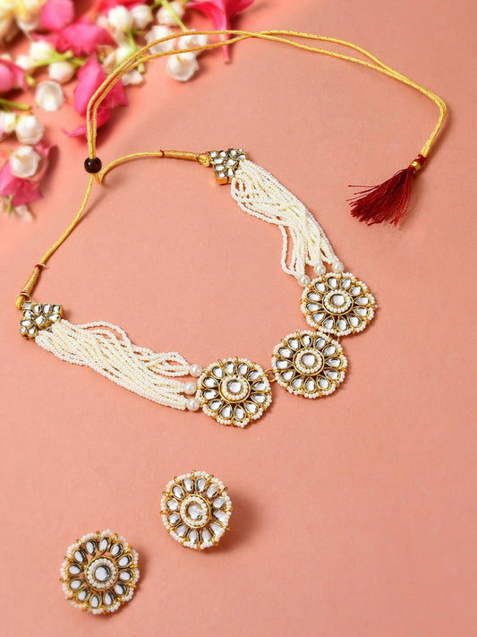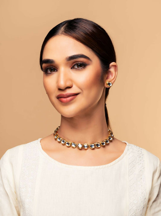 Women Gold-Plated White Stone Jewellery Set – Elegant Choker & Earrings | Indiaista