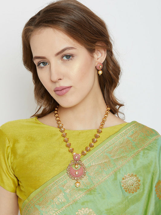 Women’s Gold-Plated Pink Pearl Handcrafted Jewellery Set – Elegant & Traditional | Indiaista