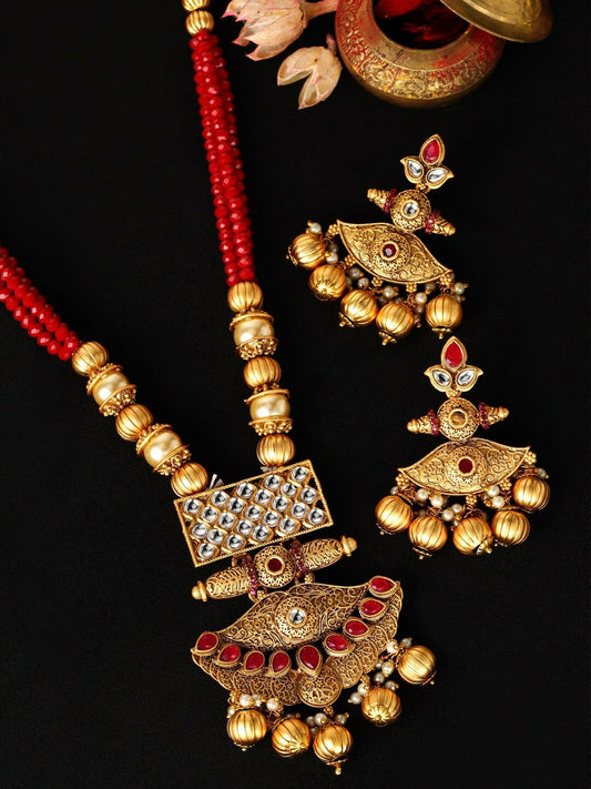 Buy Women Red Gold Plated Jewellery Set Online – Elegant Necklace & Earrings | Indiaista