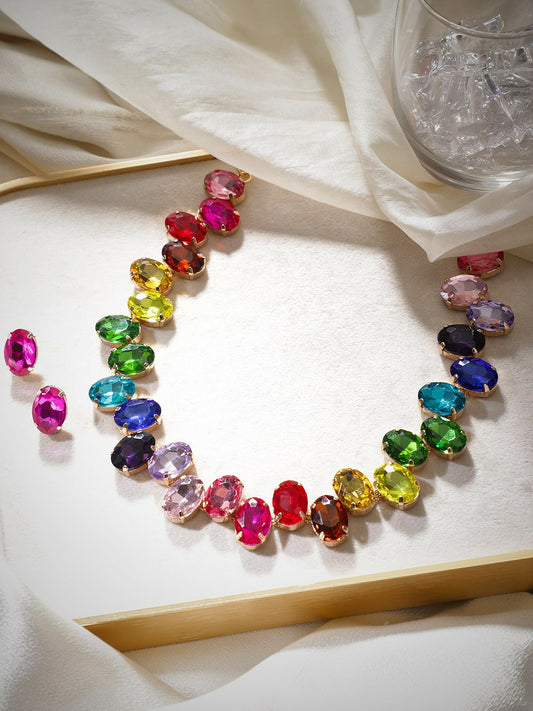 Buy Women 18K Gold Plated Multicolor Crystal AD Jewellery Set – Elegant & Stylish | Indiaista