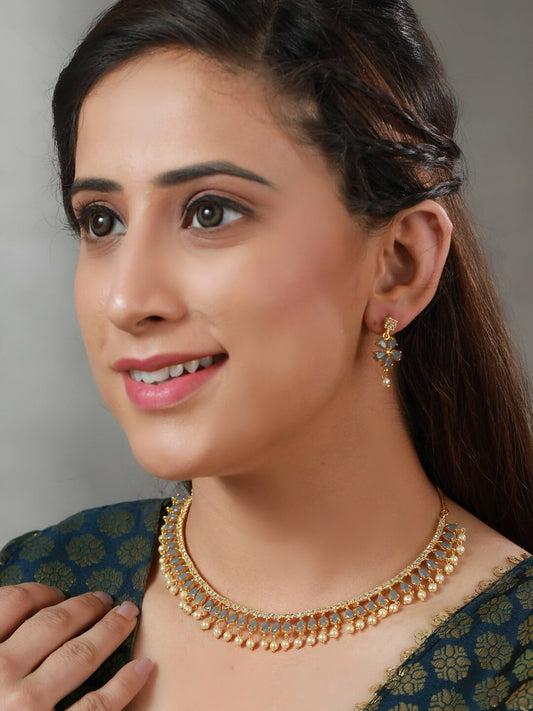 Women’s Gold-Plated Grey & White Stone Jewellery Set | Indiaista