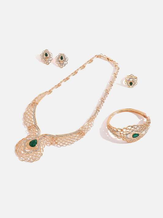 Green Stone-Studded Gold-Plated Necklace & Earrings