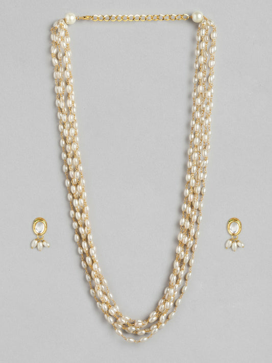Gold-Plated Layered Pearl Necklace & Drop Earrings Set