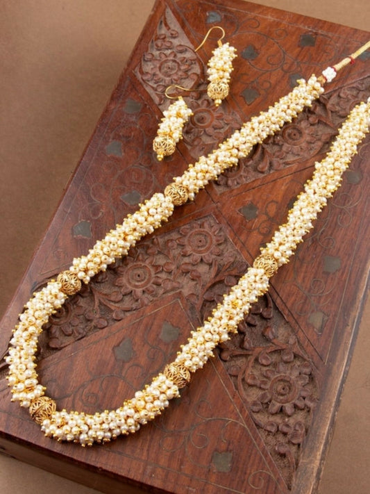Gold-Plated White Pearl Necklace & Drop Earrings Set